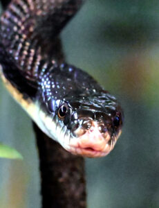 FUN FACT: Despite their intimidating appearance, black rat snakes are non-venomous and beneficial pest controllers in their ecosystems.