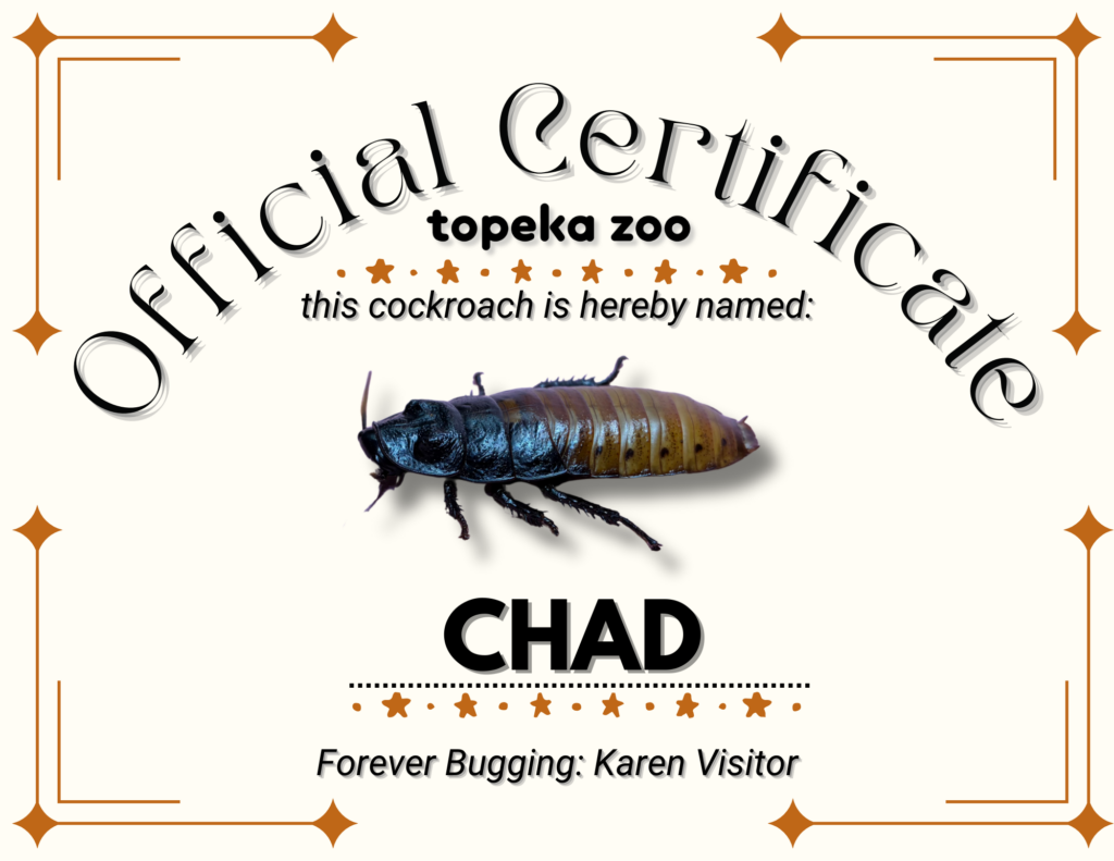 This Valentine’s Day, skip the predictable gifts and name a cockroach at the Topeka Zoo for a $10 or more donation. It’s a playful way to celebrate love, laughter, and a little mischief—while supporting animal care and conservation.